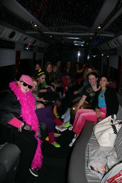 Saturday night was so much fun! We took all the contest winners from the Awesome 80's Prom contest into Manhattan for dinner and then to the Awesome 80's Prom! We arrived in style on a huge limo bus from Ultimate Class Limousine. The inside was so comfortable with cushy leather seats/couches and a huge plasma on the back wall. Plus they had XM Radio and we were blasting 80's music on the ride there and back. The driver was wonderful as well. Thanks Ultimate Class Limousine!We ate dinner at Murphy & Gonzalez and the food was wonderful. Then we headed over to Webster Hall for the Awesome 80's Prom! It was so much fun! The entire cast of characters were hysterical and we all just danced the night away to 80's music. I would highly recommend going here for your bachelorette party. We all had an awesome time. We all got a souvenir 80's prom photo as well!