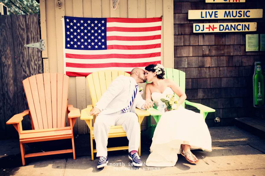 We searched everywhere for a wedding venue, but after months of searching we found nothing that suited us. I knew I was not a ball gown and ballroom kind of girl… and I was beginning to lose hope I would ever find a place. That was until my fiancé Chris found a very non-traditional place to get hitched. It was perfect. We were married at Surf’s Out in Kismet, Fire Island on the hottest day in August 2012.