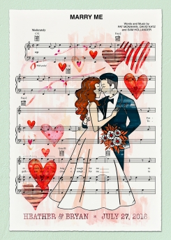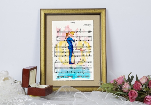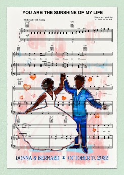 A couple’s first dance is one of the most romantic moments of their wedding day, filled with love and cherished memories. With our "May I Have This Dance?" art print, you can honor this special occasion in a truly memorable way. This creative and elegant art print features the sheet music of the couple's chosen song, beautifully personalized with their names and wedding date.