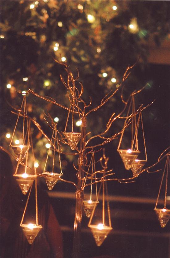I made this arrangement on my dais table, and on one table, just totally for decoration I had all sorts of candles (and a tree)Dais