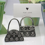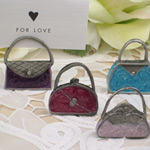You can get these purse vases on ebay (just search for 'purse vase') and you can have one on each table. You can fill them with either candy or flowers.