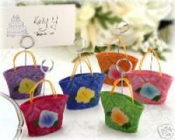 I saw these really cute ceramic bags that are place card holders... so very cute.Try the 99 cent stores sometimes you get lucky.