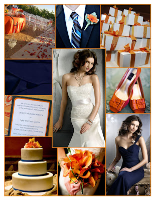 My dress is ivory w/burnt orange (see pic on profile, but orange is more deep color) and we were originally going to do a fall wedding, but now we r looking into the off season. I need some advice on other colors to go with the burnt orange!