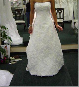 OMG i love this dress so much- i didnt see it when i was looking but im seriously concidering going to find one and getting it instead of my dress. That is my dream dress- i dont even like the one i have..i think im going on a mission. where can i find it and how much does it cost??