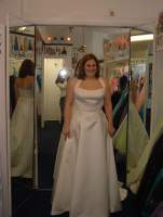 I get all blotchy on my chest when I'm nervous, so I KNEW I didn't want a strapless gown. I tried on dresses with a bateau neckline, and fell in love with my gown.