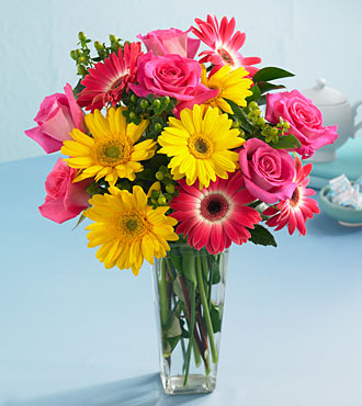 if you check out my albums, you will see a lot of different colors of gerbera daisies, we are using them too...however, aftre doing a bit of research i learned that gerbera daisies come naturally in every color you can possibly think of except blue, which is probably why you are having a tough time finding pics of thatWelcome New Vendors