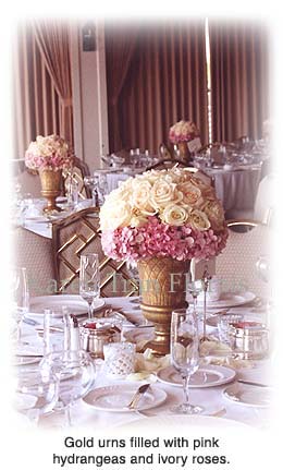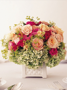 pics of hydrangea and rose centerpieces or bo-ks