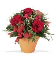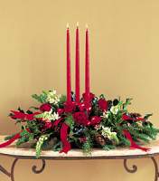 For my Winter/Christmas wedding we are having a Red Roses, Vanilla Roses, Greens and some holly with berries. It will be a very holiday center piece. Sorry I do not have pictures my florist is going to make it up for me.