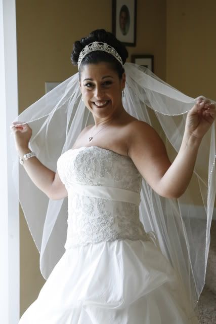 The tiara I got at The Crystal Bride... a bridal store here in Illinois and believe it or not I got my veil off of ebay for only $20.00!!! You can't see them but there were some crystals on the back of it.