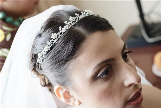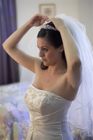 Veil- Cathedral length with pearls and we glued on small diamonds- purchased at Davids