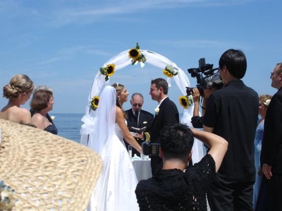 I only met with Captain Arnold once before the wedding and it became clear that he spoke a lot and didn’t really ask us any questions. We knew the ceremony was not going to personalized and my husband did not want to write his own words. We are different religions and at the same time no religion so we wanted a non denominational ceremony and thought Capt Arnold was perfect for that. Plus we thought it was cute that he was a sea captain and we were on the beach. We chose to do a sand ceremony which was very nice and everything was going along perfectly. I loved our vows and exchange of rings. But at the end he tells us to bow our heads as he performs a benediction and keeps using the word God. We didn’t know what was happening! We didn’t want any mention of that in our ceremony but I blame it on ourselves because in our meeting he did mention he only says the word God once in his benediction- and us both being very non religious- didn’t know what a benediction was so we said ok!! Anyhow all in all it was a great ceremony and I recommend Captain Arnold highly.