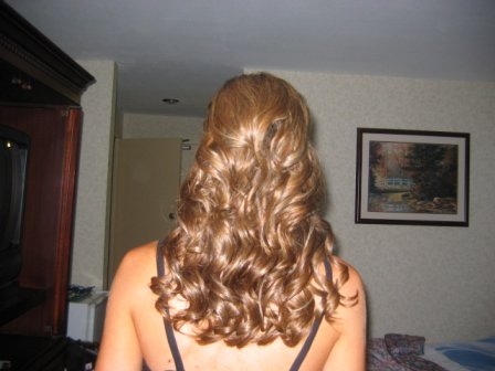 I had a trial months ago where she curled it and put the bangs back like Carmen Electra. I was never in love with how it looked but I absolutely loved Tarale. Well she did my hair again at my MOH’s wedding (eogara) and I LOVED it. She did the same curls and pulled the sides back. I decided this was how I wanted it for my wedding. I emailed this to her and she said no problem just bring pictures the day of. The morning of my wedding Tarale showed up at 4AM (her decision) and was perfectly on time. She did my hair and 2 of my bridesmaids and they were all amazing. She is just so funny and such a pleasure to be around it was a great start to my wedding day. It was the first time I liked my hair when it was done without my makeup on yet!