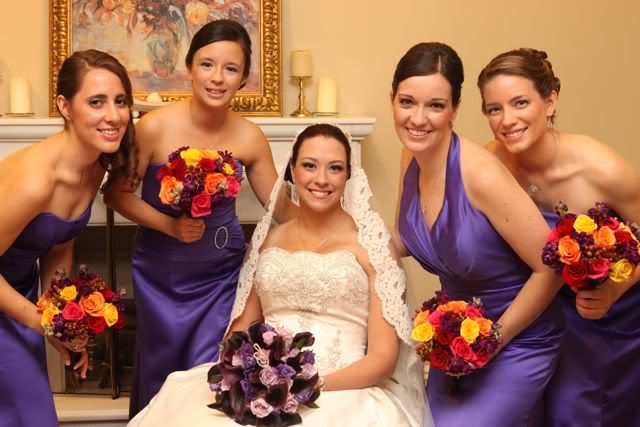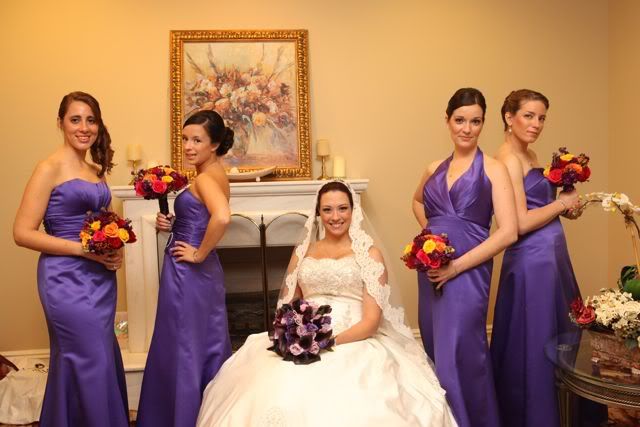 I had 6 bridesmaids all together- and only 1 lives in the NYC area. Therefore, I can’t really talk about their experiences with the salons they went to. We chose the designer Liz Fields because she is a talented younger designer, and her purple matched what I had in mind perfectly. It was after we had picked her as a designer did my MIL inform me she actually knows her, so I got to meet her and discuss the designs with her. I let the girls pick the design as long as it was available in purple, floor length, and satin. They each picked out dresses that fit their bodies best, and their personalities. The size was pretty true to size, and I never heard a complaint from any of the girls about anything being wrong with them.