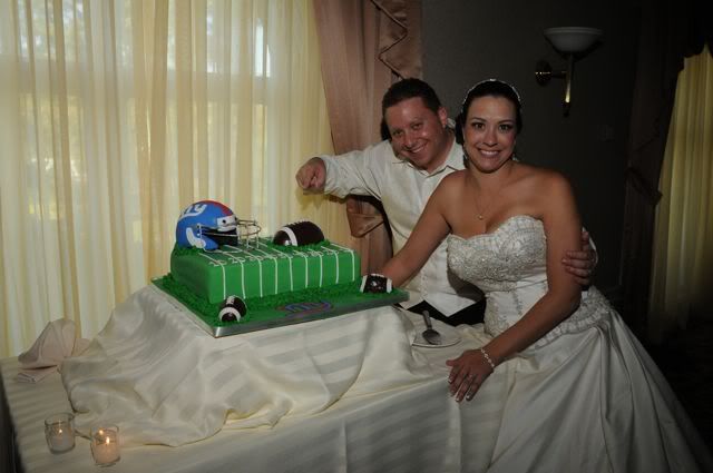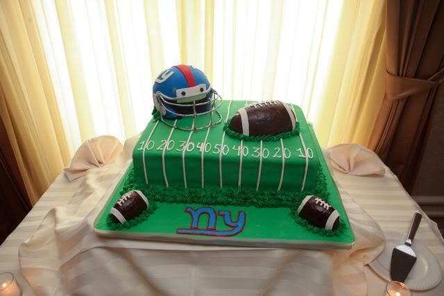 We got a groom’s cake since NRC doesn’t do Red Velvet- and I was NOT getting without Red Velvet. We had Front Street’s cookies and pastries before, so we ordered the cake from them. The cake looked awesome, but they used fondant frosting, so it wasn’t as tasty as Red Velvet cakes usually are. The Giants helmet was a rice krispie treat- so that was my favorite part. We ate the cake until Wed ( I had kids staying with me, and they kept asking for it after lunch and dinner) and it held up well. It didn’t dry out or anything.