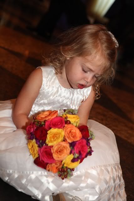 My biggest request for flowers was “NO WHITE”. I was adamant from the first meeting the only white flower would by DH’s boutonniere. My first sample was done the week my florist (Josh) was on vacation, so he had another florist do it- it was a DISASTER! The second time was a little better, but once more, my florist was not there. After several phone calls, they finally nailed it on the sample. The centerpieces and the girl’s bouquets were amazing; I had to go to their warehouse to drop off my bouquet holder, and was able to see it all come together perfectly. Josh was awesome- he’s a no BS kind of guy, and is very good at his job. He can come off a bit brash, but he knows how to make your vision come to life.