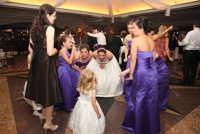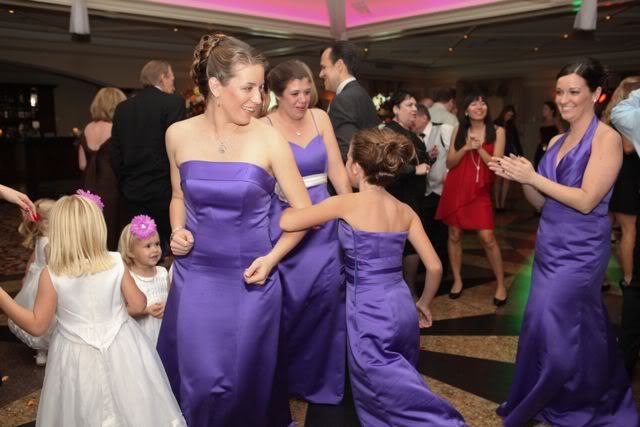 I wanted a DJ, DH wanted a band. So we got a band. The pressure was on the bands to impress me since I was against them from the start. We saw one band (twice actually), and signed them as soon as the in-laws heard them. The dance floor was hopping all night long, and they played a little bit of everything! They didn’t have any of the paperwork though, so my girls came down the aisle to the wrong song, but I sent the paperwork in late- so it is partly my fault. I wish the music would’ve been right for the ceremony, because the reception music was perfect!!!
