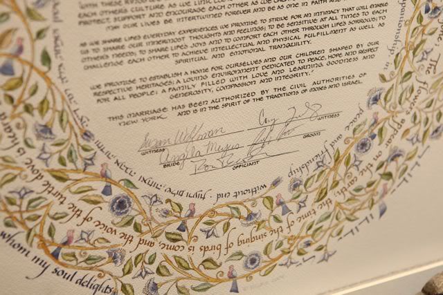 Since we are an interfaith couple, we had to find an interfaith Ketubah. A ketubah is a marriage license recognized in the Jewish faith. Zion Lion in New Hyde Park was so friendly and showed us a pretty decent size collection of interfaith. The pricing was pretty on the spot, and we ended up getting kippots and a breaking glass from them as well. She helped us with the printing and will soon be helping us with the framing of our GORGEOUS ketubah.