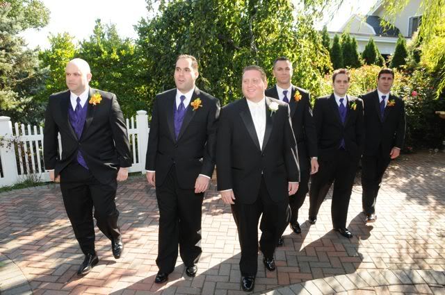 GH and his groomsman got their tuxes at Men’s Warehouse in Oceanside. The service was great, and we had no problems with them. This was one decision I had no input on- I just picked the color of vests.