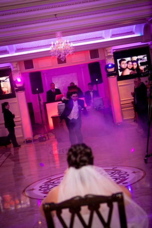For our entrance into the reception I also had another specific request because DH and I was doing a mini performance. I had told my bridal party that they needed to each take 40 seconds of dance time and my MC said that wouldn’t work. Instead he wanted me to just tell them what time I wanted to come in and they will stall if they need to. It worked out so much better their way and they timed the fog machine perfectly for when we came out. The music was pumping and they played all my requests even songs that I wanted for dinner. My MC Alex kept the party going and made the garter removal super entertaining! He was such a doll to work with and I highly recommend MRG!