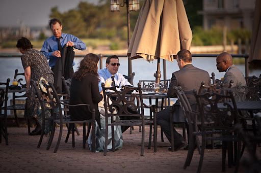 Turns out the outdoor bar was never set up, so the majority of the guests (especially the older guests) stayed inside for the cocktail hour. Finally, I decided to park myself outside with the thought that if people want to see the bride, they must come out, about 30% of our guests (primarily the younger crowd) made it out to the gorgeous patio area on the water.