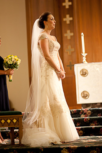 I realized the original cathedral length veil I’d purchased from veilshop.com wasn’t the right color and I wanted a little bit of beading. So, with two weeks to the wedding I headed to tri-county and thankfully they had a veil in stock that worked perfectly. They were willing to negotiate the price with us and we walked away happy.