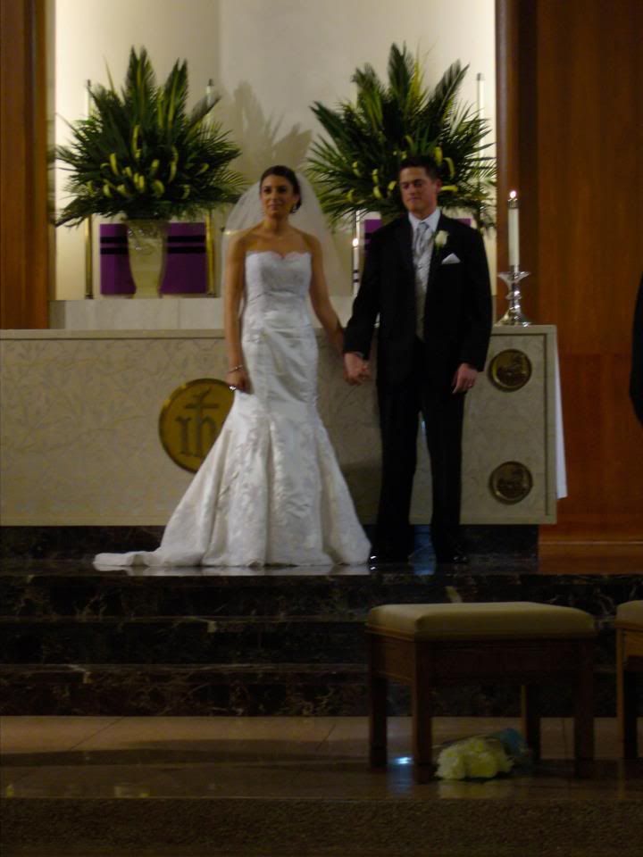 • I grew up in this church and it is beautiful and grand. I have made all of my sacraments in this church and being married there is a dream come true. DH's uncle and my uncle are both priests and married us. It was a beautiful ceremony, absolutely perfect. The musicians were great and the whole ceremony was perfect. The rehearsal was not that great I don't know if it was because I was so stressed the night before our wedding or if it was because the wedding coordinator didn't come out to help us since we were using our own priests. I thought they should have helped us anyway especially since I asked for them to help me a couple days prior.