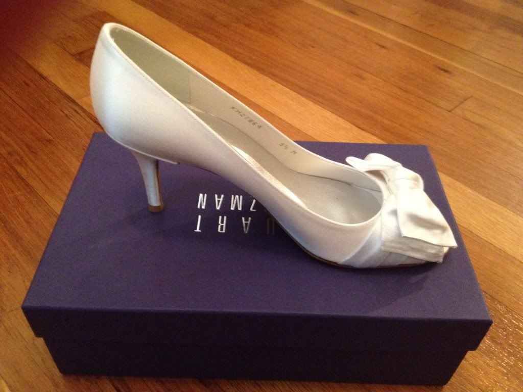 • I ordered 15 pairs of shoes before I decided on gorgeous Stewart Wiesman peep toe satin shoes with a bow. They were extremely comfortable and I kept them on the entire day and danced in them all night long.