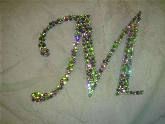 I attached rhinestones so whatever I could lol. They were on our menus, candles, favor tags and most importantly our monogram cake topper. I bought the letter from woodland manufacturing for like 5 bucks and the rhinestones came out to like $20. It took me about 2 hrs to complete the cake topper. I realized after I had nothing to hold it up with so I glued a popsicle stick to it and painted it purple to match.