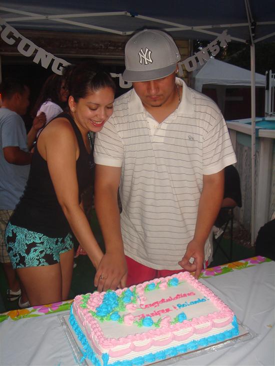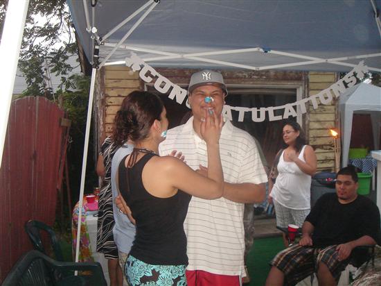 We originally were not going to have an e-party due to financial reasons. We had dished out so much money already because we had all our vendors booked by April of 2007. I was looking into party rooms and everything but we realized it just wasn't going to happen that way. So we figured we'd have a lowkey engagement party bbq. We looove bbqs so it was perfect. We bought a few decorations and a cake at Pathmark (which was yummyyyy btw) and just made usual bbq food. We had our bridal party and some friends/family over. We spent less than $400 and it was more than perfect. Everyone had a blast.