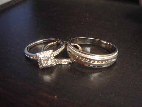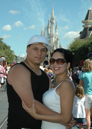 We were going to Disney World that August with my MOH and her boyfriend and I kept hinting at DH that my dream proposal was at Cinderellas Castle during the fireworks. DH kept telling me that Disney was costing too much and there was no way he could afford a ring on top of that. I got used to the idea that it just wasn't going to happen right then. DH stood at my house the night before we left to FL and I noticed a square shaped bulge in his jeans pockets and thought for a second OMG its my ring then I was like nah he couldn't afford one right now, its probably his camera. I kept it to myself on the trip to FL and was even tempted one night to go through his bags when he was in the shower lol but I kept my calm and said to myself, if it does happen I don't want to ruin it for myself. Four days into our trip we went to Magic Kingdom. My MOH's boyfriend had a backpack he carried with him to the parks that we all put our stuff into including some water I bought. I had gone into the bag before with no problem but that day he insisted I not go into the bag for my water and he would get it for me himself. I didn't think anything of it cause he could be weird like that. When we went to wait for the Spectromagic parade that night, MOH and bf went to ride Space Mountain while DH and I sat on Main St. MOH's bf left the bag with us and insisted DH watch it and not me. He made me promise not to touch the bag. Again I was like whatever and didn't make the connection. So later on we were all watching the fireworks at Cinderellas Castle and DH proposed. He didn't get on one knee though which is okay because I hate attention. It was sweet and simple. Poor Dh was shaking, it was cute. My MOH had recorded the whole thing on my camera, but sadly I lost my memory card on the last day of our trip.