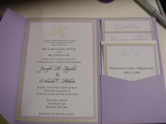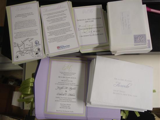 I was in love with pocketfold invites but they were so expensive so that’s the first thing I started researching to do on my own. I bought sample pocketfolds from cardsandpockets and made my own sample. I did that in January 2007 and decided on the final design right then and there. I didn’t have to worry about my invites again until the following year. Cardsandpockets is so great to work with and they have such a great selection. Everything DH printed and we just attached ribbon from ACMoore. Our invites were a hit because our family members and friends were used to the generic invites that you see 1,000x. The best part is that they weren’t that hard to do. Just assembling them was a pain.
