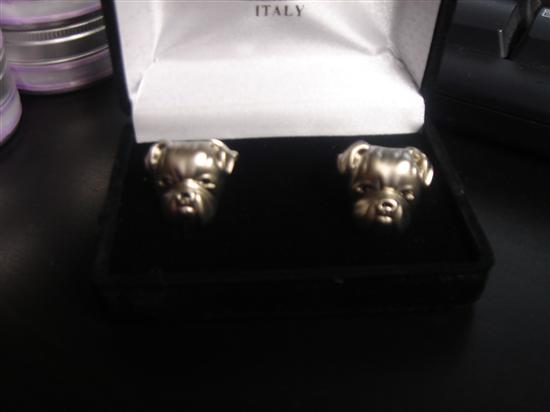3) Bulldog cufflinks for our BM (BIL) who owns and loves bulldogs. I forgot the site where I ordered them from.