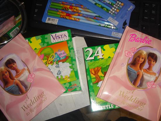 I wanted really cute stuff for the kiddy bags but didn’t want to spend like more than $1 per item. I found this nice knickknack seller that had really cute stuff like feathered pens, kids wallets, etc. So most of the stuff I bought for the kiddy bags were from them. Other things I bought were from Party City. The coloring book I downloaded off of a website.