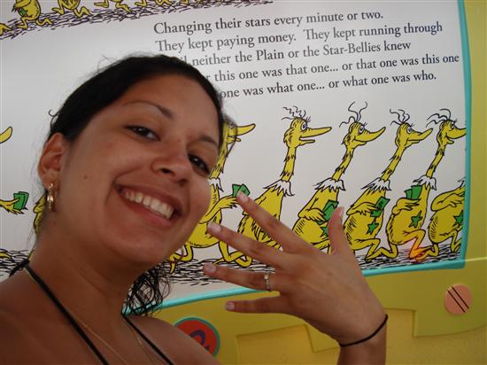 Lets start at the beginning. DH and I met online 5 yrs ago when I was 17 and he had just turned 18. We met in person officially 4 months later in June 2003. We became a couple 2 weeks later on June 17th. Right away we were a fun loving happy couple. We hit some turbulence in the winter of 2004 but that only made us stronger and it wound up making us happier than ever. It was hard being a long distance couple (I was in SI and he was in Far Rockaway) but I think that helped make our relationship strong. In 2006, even though I was only 20 I was dying to get engaged and get married. He wanted it too but wanted to wait a while. I won't doubt I talked about it all the time lol. When he agreed he wanted to plan something within the next 2-3 years, I took it to the head and right away started looking into reception halls, colors, etc. DH was into although he kept reminding me that it might not happen as soon as I wanted. I didn't listen and kept right on planning lol.