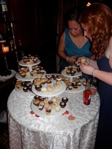 I met Kim from Kupcakes with a K at an LIW event and was able to taste some of her mini cupcakes. She was a fellow bride, planning her wedding, and was so friendly and enthusiastic that it made me want to find a way to incorporate her cupcakes into our wedding. Since we were a little worried about our wedding cake not being great, we ended up ordering 12 dozen mini cupcakes to be served during dessert. For me, the two standout flavors were vanilla with cookie dough filling/frosting, and red velvet with cream cheese filling/frosting. We also had chocolate with cannoli filling/frosting, rainbow cookie (almond cake with fudge frosting and a piece of rainbow cookie), vanilla with coconut frosting topped with shredded coconut, and chocolate with peanut butter filling/frosting. They were all good, but not as popular with the guests and we had a lot of leftovers. The mini cupcakes were $1 each and we rented her cupcake towers ($5 each) and paid for delivery ($10). I think the cupcakes were a nice addition to dessert, but wish I had gotten some takeout boxes for guests to take the leftovers home.
