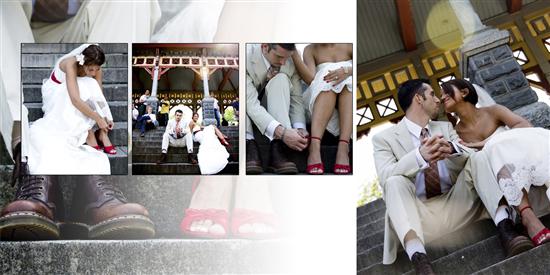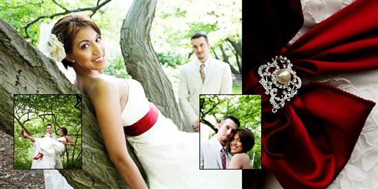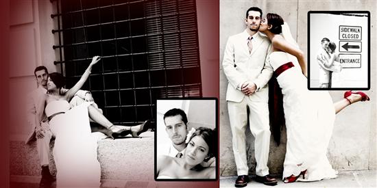 OK so I wasn't going to do this but you know me...I like posting visuals because I am visual and other people's visuals helped me with planning our wedding. So here is the layout for oru DAY AFTER session. I decided to bite the bullet and made it into a 10x10 panoramic flushmount )meaning a seam down the middle but no split)album with a red leathertte cover (of course).All layouts designed by me in Photoshop. I hope is helpes other ladies out when they are trying to figure out their own album layouts.