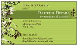 Hi,Congrats on getting engaged!! I understand wanting to stay close to home, and even though I am located in Massapequa Park, right off of the Southern State, I know that D-liteful Details is your ideal choice for invitations!! Having a home based business, I am completely at your disposal, available based on your schedule! 7 days a week, any time between the hours of 9am and 10pm.