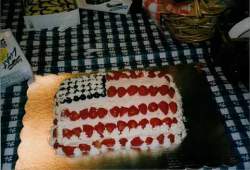 Here's one of a few hat box wedding cakes that I have made...for our very own, Michele31:And, here's a canvas apron that I used as a guest book for my friend Brenda's wedding shower: