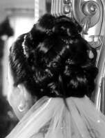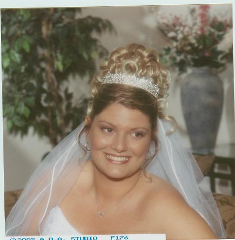 I wore one of those clip on ponytails that you can get at the mall kiosks. So did my sister, my mother and one of my bridesmaids.My hair is pin straight and I wanted to wear it half-up. The ponytail gave it the perfect amount of height and helped the veil sit better on my head.