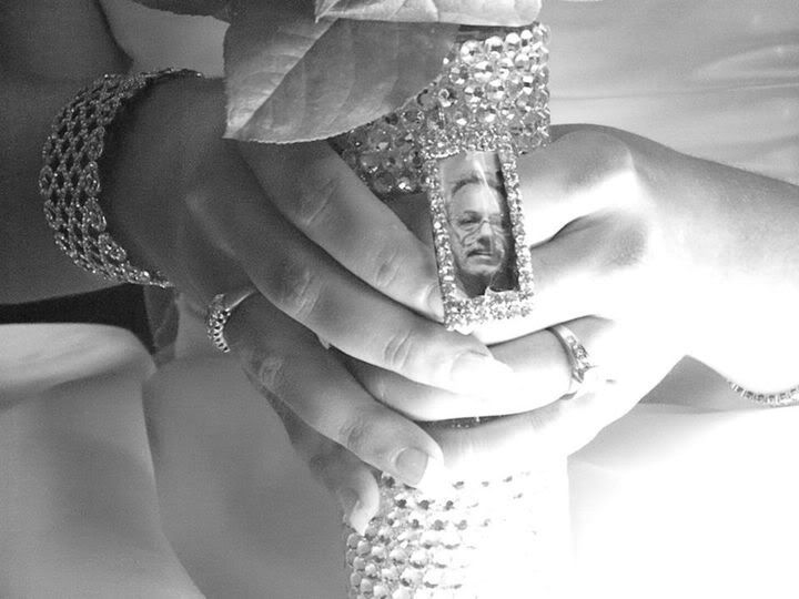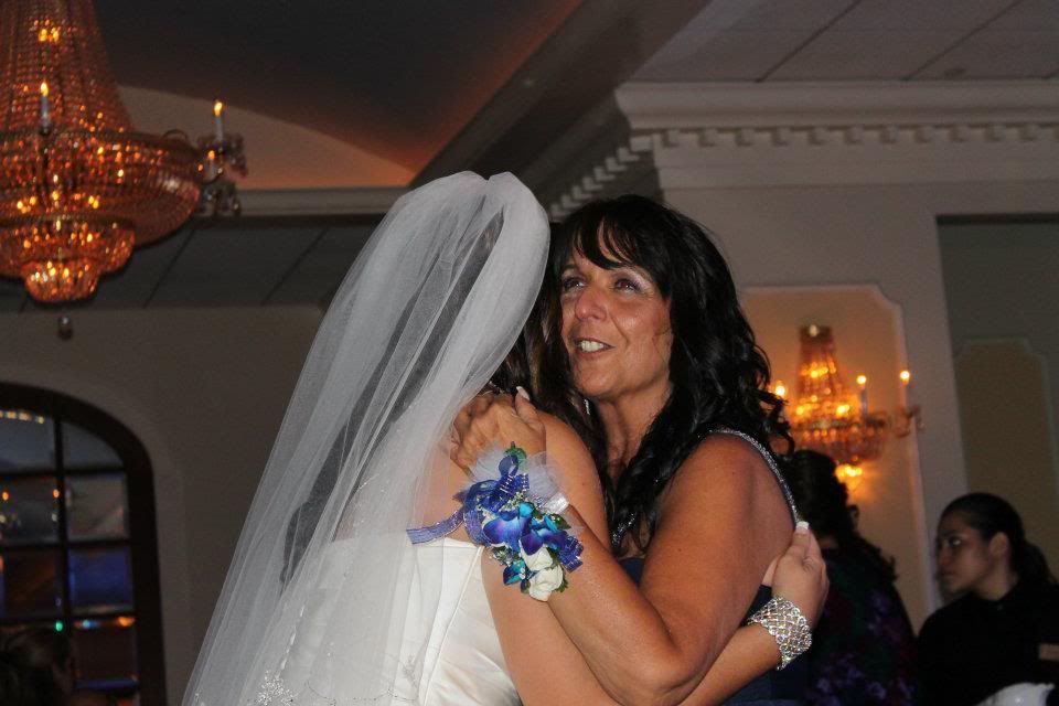 As some of you know, my father passed away early on in our engagement. During what should have been the father-daughter dance, I danced with my mother (as shown), and a photo montage of my father (with me) played on the flat screens. But, surprise, surprise, my photographer failed to catch this!