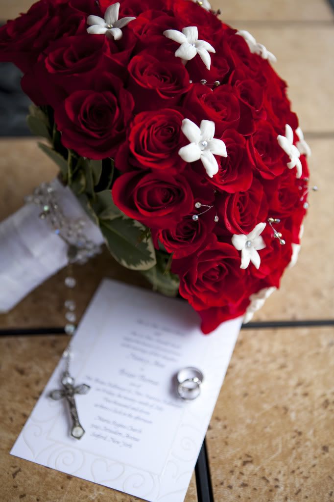 Grandmother's rosary beads on my bouquet: