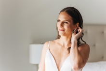 A year later, Sam and Pat were married at The Boathouse on Shelter Island. A beautifully-secluded venue accessible by a very simple ferry ride, it's set on 18 acres of land and overlooks West Neck Harbor. The Boathouse can accommodate up to 200 guests and offers a variety of indoor and outdoor spaces for events. The indoor space is a large, open-floor concept with a high ceiling and plenty of natural light. The outdoor space features a large patio with stunning views of the harbor—which was perfect for a very picnic-like cocktail hour and some stunning portraits.