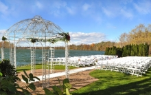 The grand ballroom offers majestic views of the picturesque lakeside setting, featuring a spacious dance floor equipped with built-in surround sound speakers. Our house entertainment enhances the experience, creating a magnificent ambiance for you and your guests. During the cooler months, enjoy the cozy warmth of a glowing fireplace in our elegant cocktail room, making every moment special.