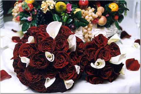 My bo-k (based on the pic above) was black magic roses & white callas with a little stephanotis. My BMs had burgundy callas with ivory roses... see my review on the review board... and soon I will have proofs scanned, I hope!