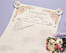 Stef I was thinking the same thing about the guest book sheets. I know the young people would probably have fun filling them out, but I doubt the older people would want to be bothered, or even know what they were! They're so cute, but I'm not sure if that's what I want to do.My friend had a calligrapher print her and her husband's name on a big sheet of parchment paper along with her wedding date and lines for guests to sign their names. She then framed it in this beautiful dark cherry wood frame. It's absolutely gorgeous! But again, do I really want to have to display that? I'm not sure..... I'm still leaning towards the plate idea.