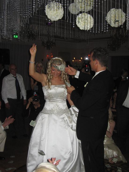Throwing money at the bride or the groom or whomever, is a tradition in many cultures including Greek and Polish...I personally LOVE IT...and I loved at Anita's (vita930) wedding...heres a nice shot of her husband throwing $$ at her...I love it!