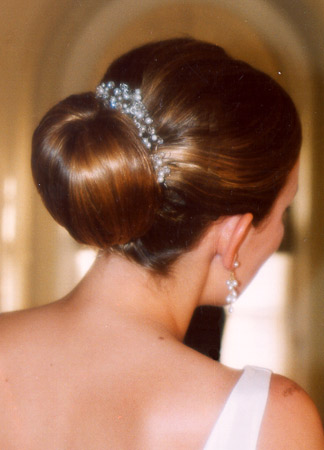 I wore a tiara comb atop the chignon...satisfied my need for a tiara and grown up hair...there are some pictures in my review Once I get my pro-pics, I'll forward as well.Here are some from the Hair Style Thread