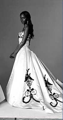 I got a priscilla of boston dress - it was originally high necked - (they are showing it now in many magazines with a scoop neck now) but I wanted it strapless - They custom made it strapless - I was able to look at other dresses and pick the type of neckline that I wanted and whether i wanted piping on it or not). My dress came in about a month ago - I had my first and ONLY fitting on 2/27 - when I get back to MI i will post photos