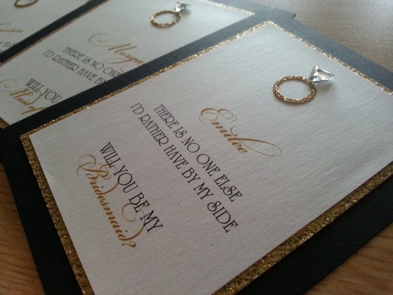 We are only having my sister as Maid of Honor and his best friend as the Best Man, so I got a bottle of her favorite wine and had a label made on Etsy that said her name and 'will you be my maid of honor' and I got her a pretty glittery glass engraved with my sister's name that said Maid of Honor. For his friend we had a Jack Daniels-like label made up to put on a bottle asking the BM, along with a cigar that says 'your service as Best Man is requested'.