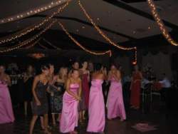 i actually had to do my bouquet toss twice too. the first time the bouquet hit the ceiling (luckily nothing broke) and so the second toss i missile-launched it straight back into the crowd! :)